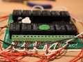 De bedoeling was om een 12 channel schietkist te maken maar de leverancier had maar 11 speaker connectors gestuurd in plaatst van 12 dus daarom zie je op mijn tekening maar 11 connectors. De gaten zijn gemaakt en ook zijn de gaten gemaakt voor de 2 LED lampjes en schakelaars. Nu is het tijd om te gaan solderen, begint met de speaker connectors. Om zelf een goed overzicht te houden heb ik gebruik gemaakt van rood&oranje kabels voor de plus kant en zwart/bruin voor de minus kant. Nadat de speaker connectors zijn gesoldeerd heb ik ook direct de schakelaars en LED lampjes gesoldeerd. Om ervoor te zorgen dat de LED lampjes niet klappen door een te hoge spanning heb ik een resistor er tussen gesoldeerd van 1k Ohm.